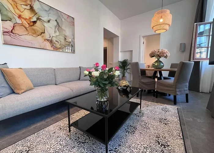 - ❓Is there a kitchen available at this spacious apartment for guest use?Yes, this spacious apartment is furnished with a fully equipped kitchen and offers an electric kettle, a fridge, and kitchenware as well.